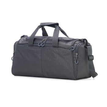 Informações do Produto: Bolsa de viagem de 28 litros em poliéster oxford resistente à água com quatro compartimentos. Contém alça de mãos com suporte de juntura, bases antiderrapantes e acompanha alça transversal com suporte de apoio para ombro.