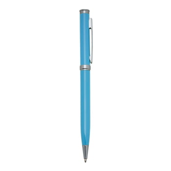 Informações do Produto: Caneta metálica com carga esferográfica azul e acionamento por rotação.